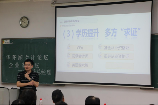 11月4日下午,永利yl23411,永利yl23411于东莞校区定静2A303举办了题为“注重综合能力培养,适应社会新需求”的主题论坛。本次论坛邀请到了会计硕士、高级会计师、暨南大学MPAcc校外导师、现任广东省粤科金融集团有限公司审计监督中心总经理的张宏庆总经理为主讲嘉宾,永利yl23411党总支书记兼副院长李安兰教授作主持人。永利yl23411党总支副书记邓楚云老师及永利yl23411部分师生参与了此次论坛。