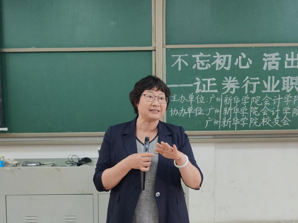 活动伊始,李安兰教授对邱思敏校友及证券团队参加此次讲坛和精心准备的分享表示衷心的感谢,同时叮嘱参会师生要坚定理想信念,不忘初心使命,不要受限于自己的专业,要敢于尝试、开拓进取。在经济全球化时代,作为财会类人才更应该把握好机会,紧跟经济发展潮流,拓宽自身专业知识面,为建设社会主义现代化强国贡献青春力量。