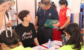 师生党员在党员先锋岗为家长和新生答疑解惑