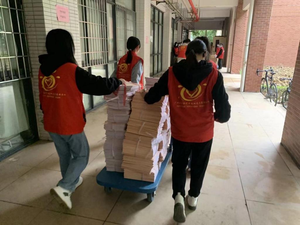 志愿者团结协作运送毕业论文