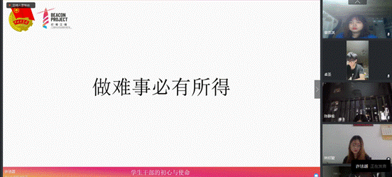 第一阶段为第三届主席团、部长团对储备干部候选人的培训,他们就自己对接的工作、各部门职能及工作中应注意的事项展开了专项培训。