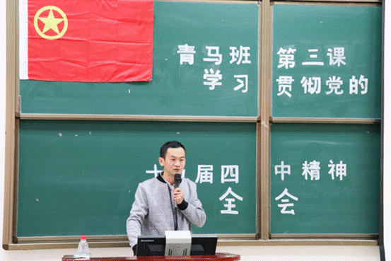 紧接着,永利yl23411常务副院长林源副教授为我们做开场致辞,他提到:作为新时代的大学生,我们不仅要正确理解并牢记党的十九届四中全会精神,也要加强自身的政治修养,做到知行合一,时刻为建设中国特色社会主义而奋斗。