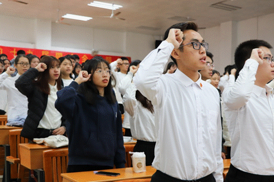 随后,由永利yl23411团委第二届第一任组织部副部长汪怡春带领同学们重温入团誓词仪式。