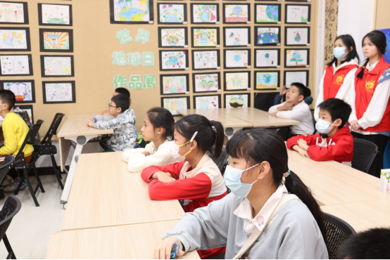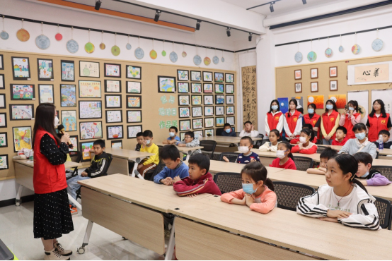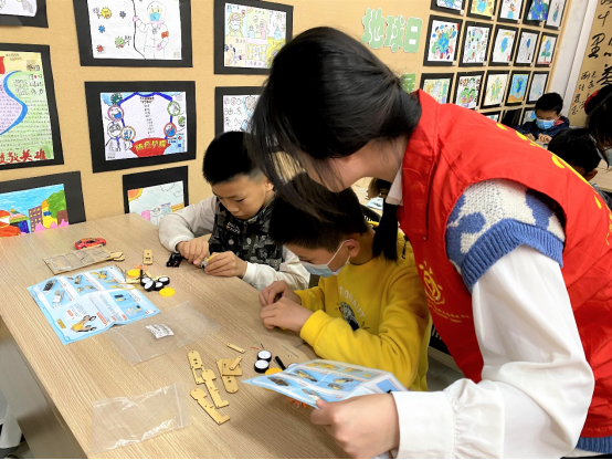 图二 志愿者同参与活动孩子们一起“谈谈科技”