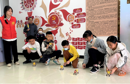 时光荏苒,白驹过缝。活动在不知不觉中临近尾声,志愿者组织小朋友拿着创作成品进行拍照记录并收拾清理好现场。通过本次科技手工制作活动,孩子们初步了解蠕虫机器人的工作原理,同时也激发了他们对手工制作的兴趣,培养了他们的创意思维,让科技教育融入了孩子们的日常生活,使科技的种子在孩子内心生根发芽。