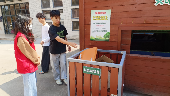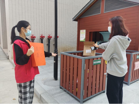 图3志愿者引导同学们投放纸皮垃圾
