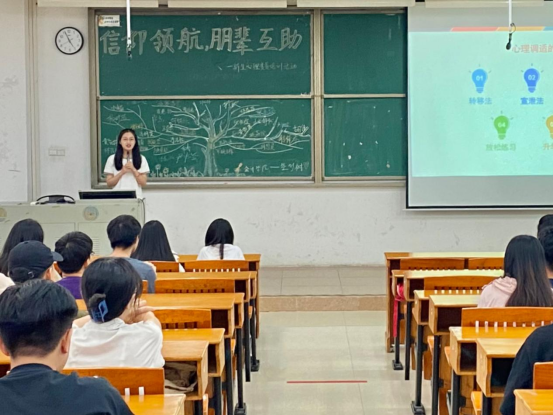付迪老师则结合马克思主义哲学原理以及红色故事讲解常见的心理调适方法,引导同学们用榜样的力量筑牢信仰之基,用辩证的思维理清问题所在,用发展的思维看待生命中的困难和挫折,理解世界的物质统一性和多样性,悦纳自己,提高自身情绪调节和心理疏导能力,助人自助。
