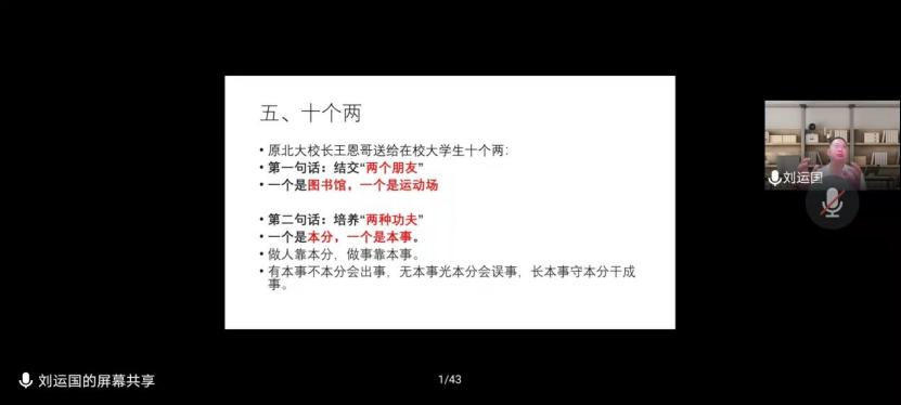 最后,刘运国院长还鼓励和嘱咐同学们,危难是人生最好的老师,是对我们最好的历练,保持好个人心态,静待花开!