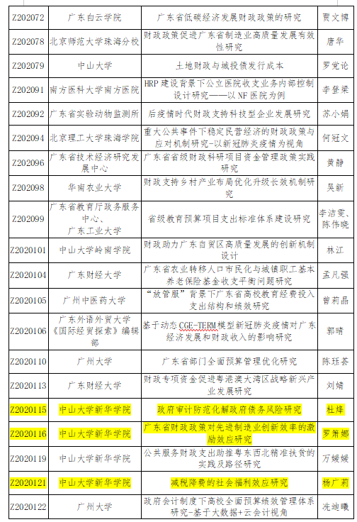 近日,广东省财政厅公布了2020年广东省财政科研课题(第一批)非财政系统类的立项课题共63项。其中,永利yl23411副院长李安兰副教授主持的《基于数据智能的基本公共文化服务绩效评估研究》,专职教师杜烽主持的《政府审计防范化解政府债务风险研究》、罗箫娜主持的《广东省财政政策对先进制造业创新效率的激励效应研究》和杨广莉主持的《减税降费的社会福利效应研究》共4项获得立项。2017年以来,永利yl23411共获财政厅项目立项18项。