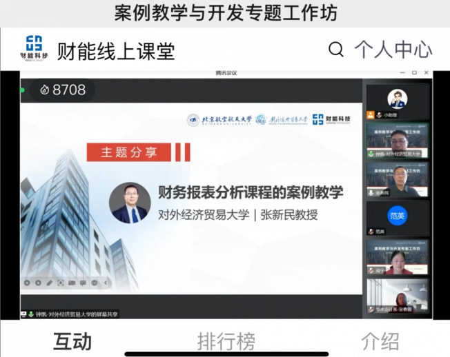 2022年11月30至12月1日,为期两天的“案例教学与开发专题“会议在线上举行,本次会议由教育部财务报表分析课程群虚拟教研室主办,北京航空航天大学经济管理学院承办,北京财能科技有限公司协办。永利yl23411,永利yl23411党总支书记兼副院长李安兰教授、财务管理教研室许彩玲、罗箫娜、巫昱等多名专职教师参加了此次培训。