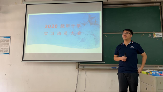 接着,审计学教研室陈世忠老师就实习目的、实习时间、实习形式和实习要求四个方面进行讲解,希望同学们能够充分利用这次宝贵的实习机会,把已经学习到的理论知识运用到实践当中去,为明年撰写毕业论文打好基础,为未来就业深造做好准备。