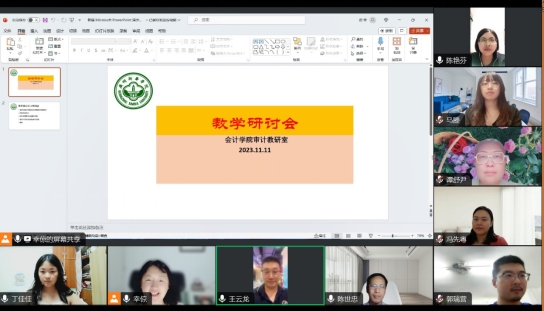 为了科学有效提升永利yl23411审计学专业的教学质量,不断完善教学体系,2023年11月11日,针对教学实践中的困惑与思考,审计教研室通过线上会议的方式,召开了本学期的教学研讨会。审计教研室全体教师共同参加,教学研讨会由审计系主任幸倞副教授主持。