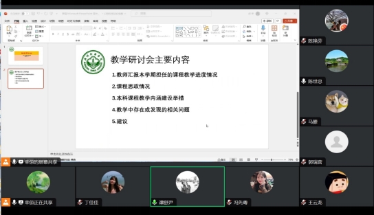 各位教师对本学期担任的课程教学进度情况进行汇报,每位教师根据自己的教学进度表和教学大纲汇报了自己的授课情况,其中,主要围绕着课堂教学、课程专业内容、教师授课方式、教师课堂互动、专升本新生对学院和教学适应性多方面进行了交流与讨论,探索更加让学生适应的授课方式。在会上,大家纷纷表示要打磨出适合自己的金课,发挥自己的优势与长处,做好自我管理、自我驱动、自我治理和自我发展,严格要求自己,处理好教学、科研与学生工作之间的关系,认真履行自己教师的职责,做好立德树人教书育人。教师们针对课程思政“三进”建设,总结了自己本学期在教学中“课程思政”进教材、进课堂、进头脑的具体措施和做法。冯先粤老师和谭舒尹老师分享了本学期开展“翻转课堂”实践的教学体会,这种授课模式不仅拉近了和学生的距离,也促进了学生自己的动手能力和独立思考能力,值得进一步落实探索。