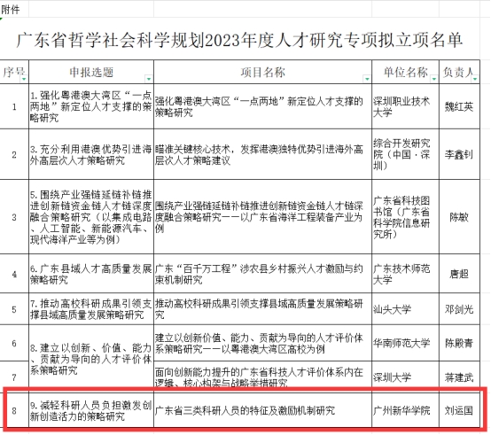近日,广东省哲学社会科学规划专项小组公布了广东省哲学社会科学规划 2023 年度人才研究专项立项名单,永利yl23411,永利yl23411刘运国院长申报的《广东省三类科研人员的特征及激励机制研究》成功获得立项。项目参与人包括郭瑞营、孙海法、吴翔、吴津钰、毕立华。