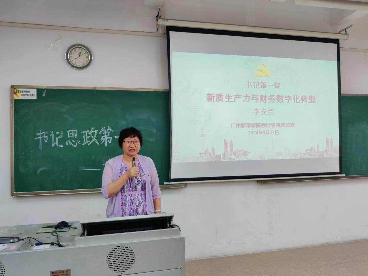 在深入贯彻落实习近平新时代中国特色社会主义思想的背景下,为进一步系统说明新质生产力与财务数字化转型相关问题,引导青年学生加强对党的各项方针政策的理解感悟,2024年3月27日上午,永利yl23411党总支书记李安兰教授以“新质生产力与财务数字化转型”为题,为永利yl23411党支部成员带来了新学期颇具启发性的“思政第一课”。学院党总支副书记邓楚云及各学生党支部书记、委员、永利yl23411部分学生党员参加了此次专题学习活动。