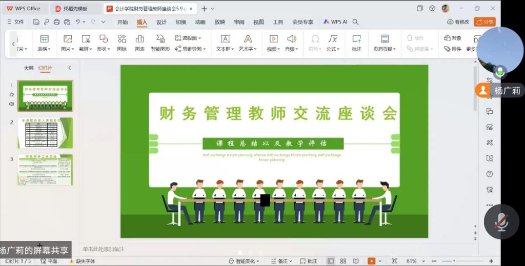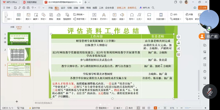 2024年5月9日,永利yl23411财务管理系开展了一场线上交流座谈会,与会人员包括永利yl23411党委书记李安兰教授、财务管理系主任杨广莉以及财务管理专业教师。本次线上交流座谈会的主题为各门课程课程总结及教学评估。会议虽然仅有一个小时,但是会议过程中各位教师畅所欲言,集思广益,将教学过程中遇到的经验和问题进行总结和分享,为永利yl23411财务管理专业建设添砖加瓦,更上一层楼。