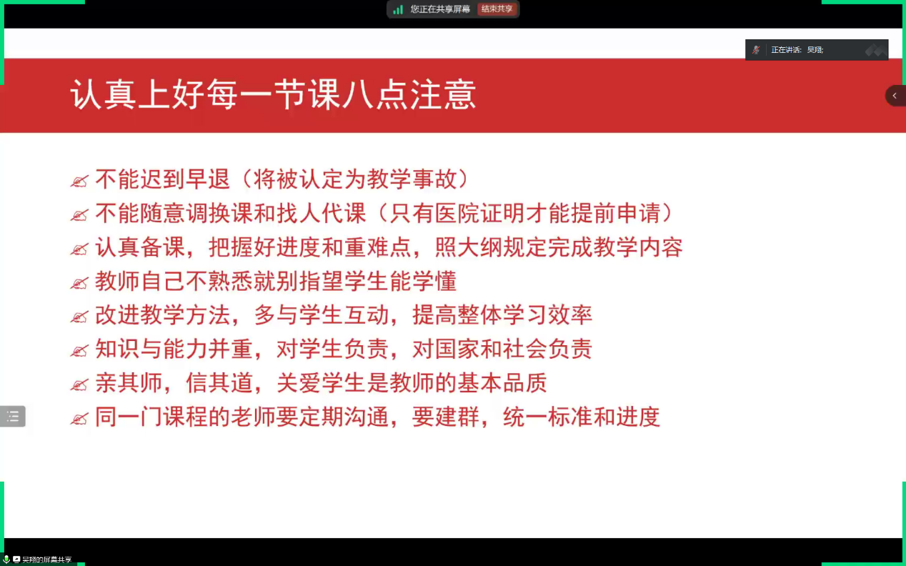 吴翔副院长在课堂管理方面对新教师提出了要求。他强调教师应该做好榜样工作,专注于教学,以德树人、用心教学,除了要高质量完成每一堂课以外,更要不断精进专业素质,不断深入学习,才能更好的为学生传道授业、答疑解惑,培养出更加优秀的专业人才。