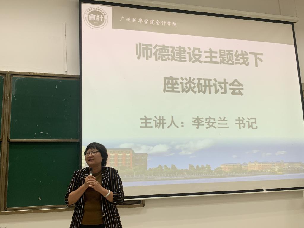 随后,会议安排了师德建设主题线下座谈研讨会环节。李安兰书记作主要讲话,她特别指出,师德师风建设是学院工作的重中之重,要求全体教师深入贯彻“新时代高校教师职业行为十项准则”。