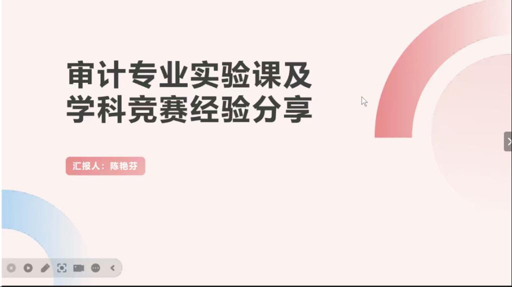 陈艳芬副教授分享了实验教学改革以及学科竞赛的宝贵经验。首先聚焦于审计专业实验课的创新之路,她强调在数字化时代,审计教学必须紧跟行业发展趋势,将理论与实践紧密结合。在谈及教学改革时,陈艳芬副教授指出,传统的教学模式已难以满足当前社会对审计人才的需求,因此必须勇于打破常规,敢于创新,也鼓励刚入职的新老师积极加入到教改当中。陈艳芬副教授强调学科竞赛是检验学生学习成果、锻炼实践能力的重要途径。在竞赛过程中,不仅要注重培养学生的专业技能和应试能力,更要注重培养他们的创新精神和团队协作能力。