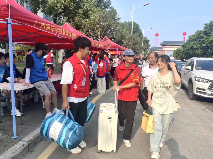 迎新志愿者们身穿马甲,手持指示牌,整装待发,热情地引导新生完成各项入学手续办理,帮助新生搬运行李,为新生初入校园之旅减轻负重;新生班助与辅导员老师们也积极投入迎新工作之中,为新生及其家长就大学就读期间相关问题答疑解惑。