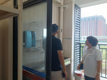 李安兰书记(右)和姚智新老师(左)检查宿舍设施