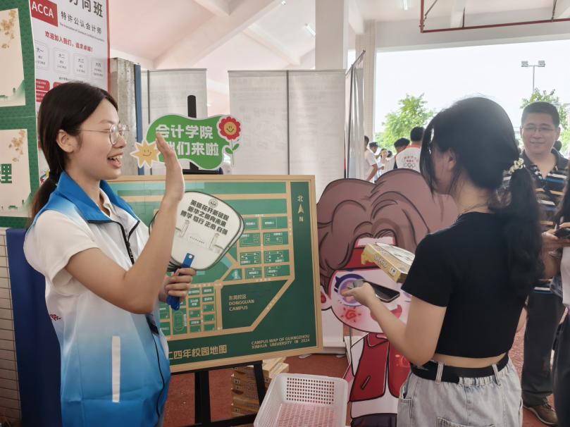 为帮助新生更加直观地了解校园分区,永利yl23411学生工作办公室心理模块专门设置校园地图拼图游戏体验区,以充满互动性与趣味性的方式帮助新生快速融入校园环境,增加了迎新活动现场的热烈氛围。此外,心理模块还为新生准备了融入永利yl23411特色元素的扇子,为从五湖四海聚集而来的新生们送去阵阵清凉。