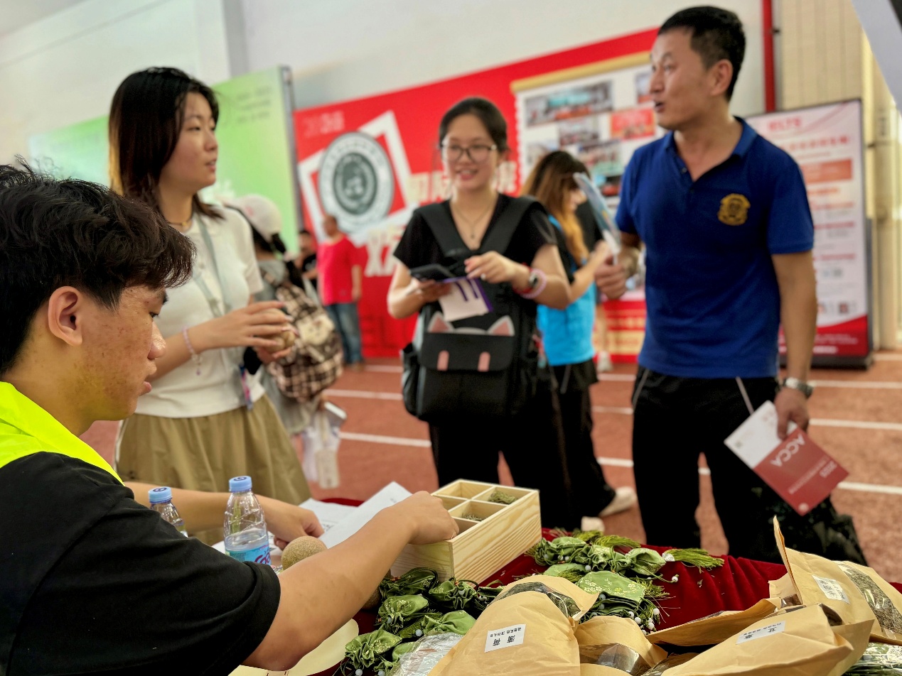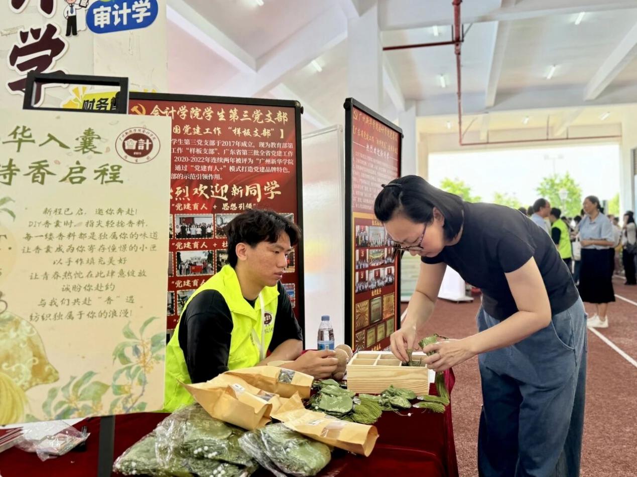 此外,学院在迎新点设置摊位开展“芳华入囊、诗香启程”活动,为参与者介绍丁香、豆蔻、薄荷等香草的功效与药用价值,详细讲解香囊制作方法,将中国传统香文化与防蚊卫生宣讲相结合,与新生共赴“香”遇、守护健康。