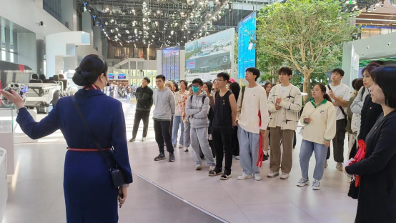 接着讲解员带同学们来到了责任广汽区域。在此区域展示了丰田的环保理念和实践,包括节能减排、绿色生产等。广汽丰田积极响应国家的环保政策,致力于打造绿色工厂,实现可持续发展。